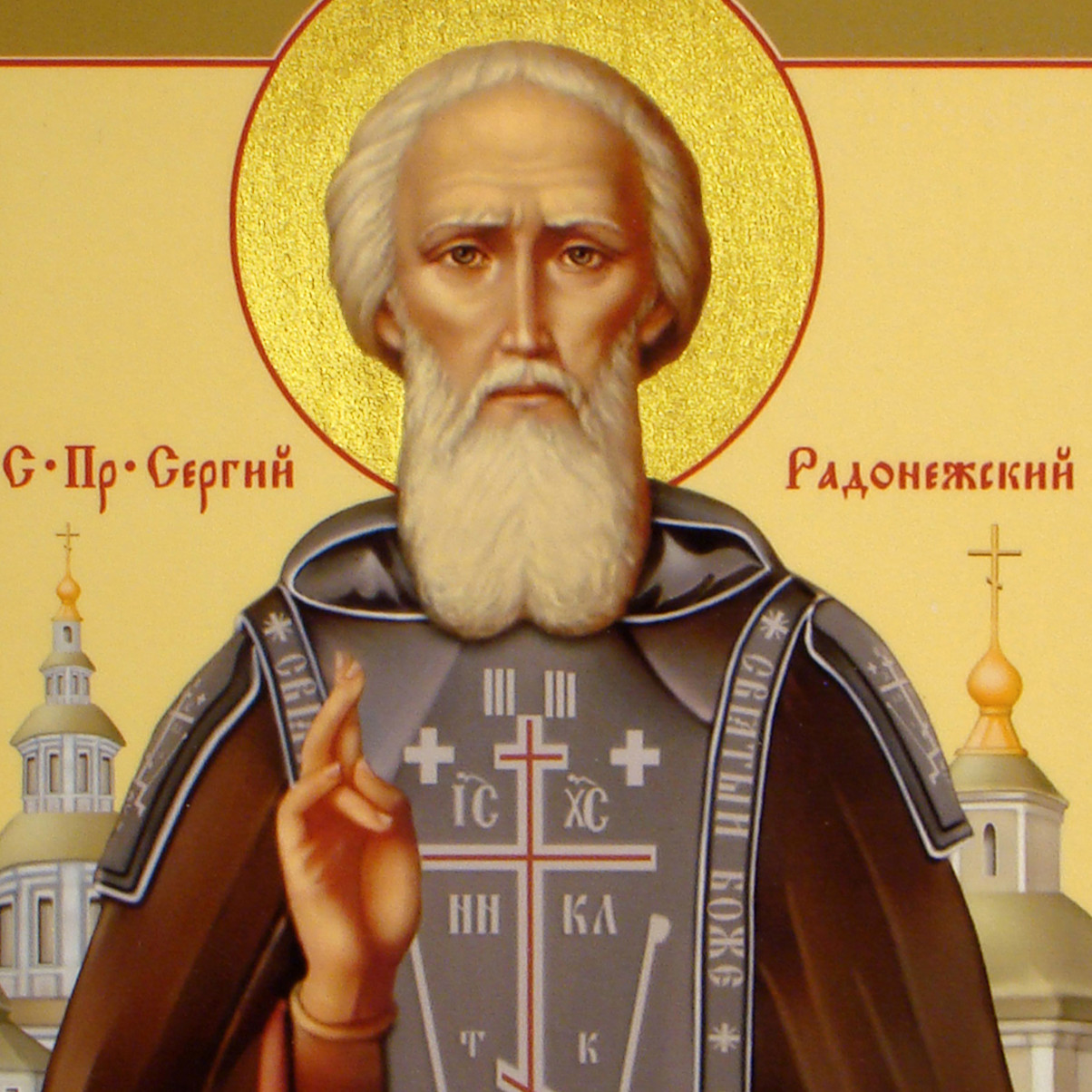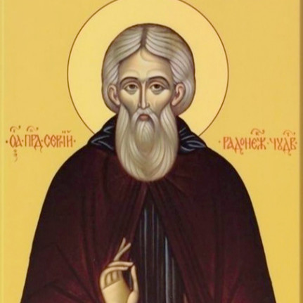 Прп. Сергий (в миру Варфоломей, 1314-1392), великий русский святой, был сыном ростовских бояр. С детства он стремился к учению, но грамота давалась с трудом, пока чудесная встреча с монахом не даровала ему разумение. После смерти родителей Сергий уединился в лесу, где построил келью и церковь, положив начало обители. Со временем к нему присоединились ученики, и Троице-Сергиева Лавра стала центром духовной жизни Руси. Сергий славился смирением, духовной мудростью и чудесами, не раз удостаивался явления Богородицы. Его считают духовной опорой в сопротивлении монголо-татарскому игу, он благословил св. Дмитрия Донского на Куликовскую битву. Преподобный скончался в 1392 г., погребен в Троицком соборе; его рака является местом паломничества всего православного мира.